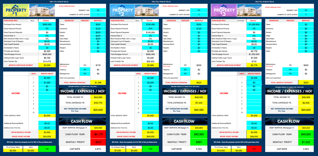 Analyze properties like a pro. Simply add some numbers and the GREEN $ RED lights lets you know if it's a